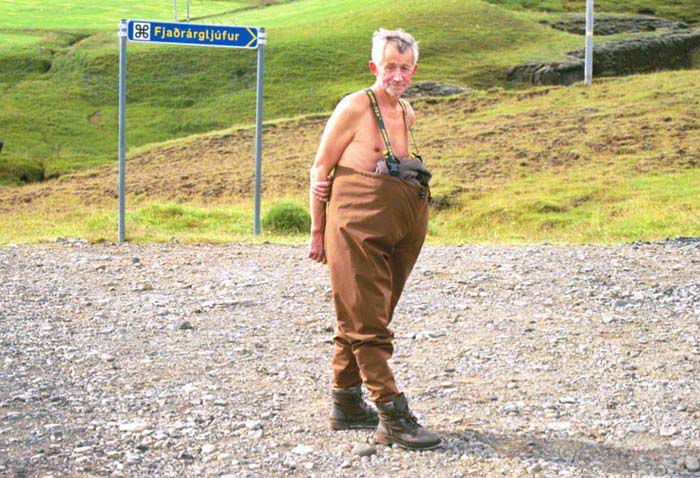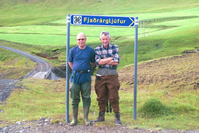 Kristjan and Gudjon under the Fjadrargljufur sign