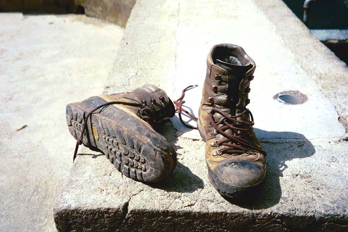 Kristjan's walking boots after over 2000km of hiking