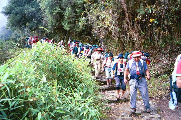 The porters running down the trail