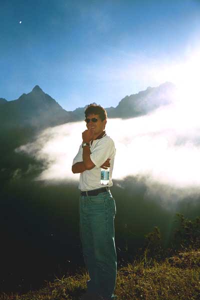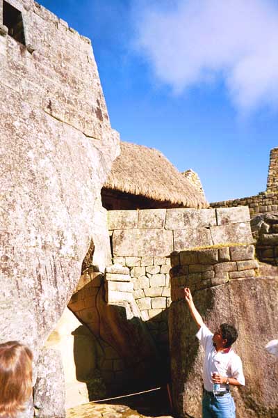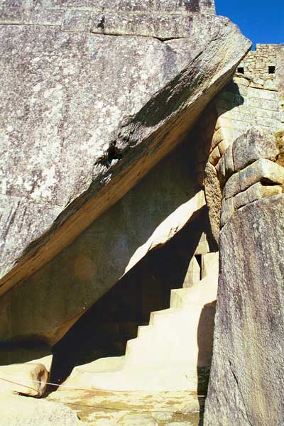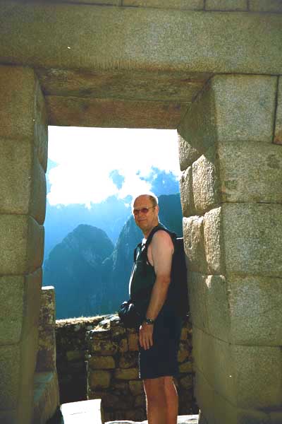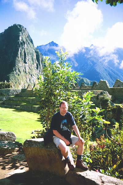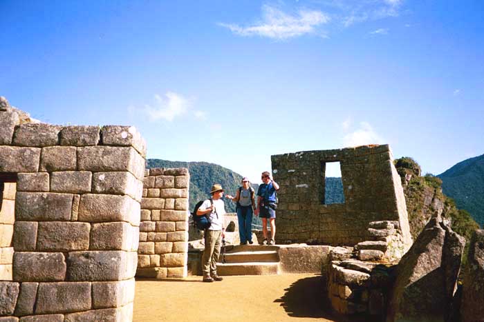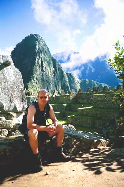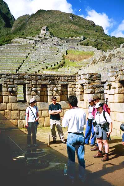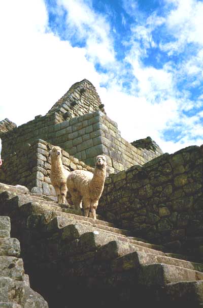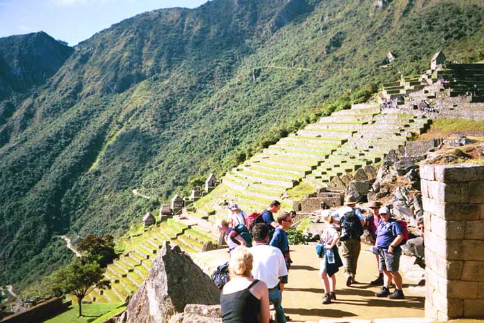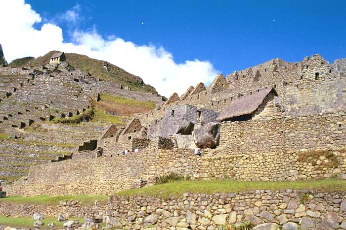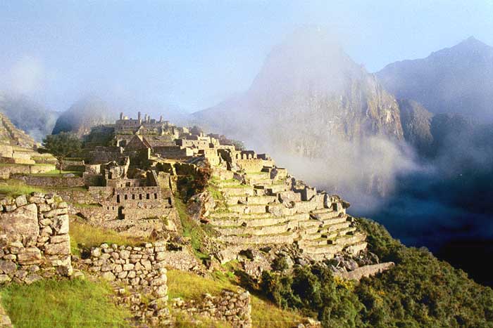 The Machu Picchu ruins with Huayna Picchu covered in clouds