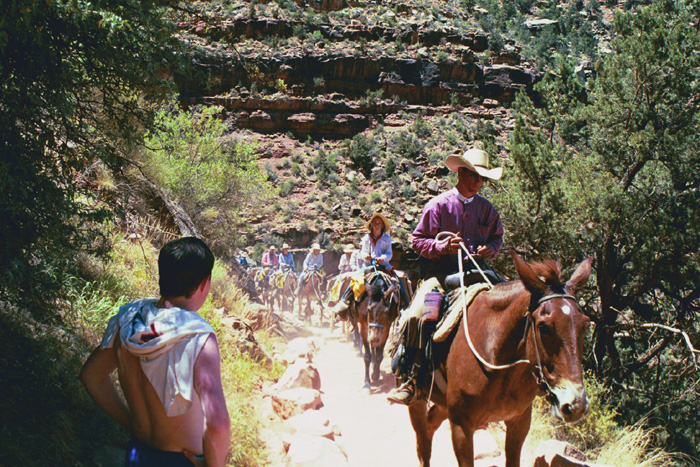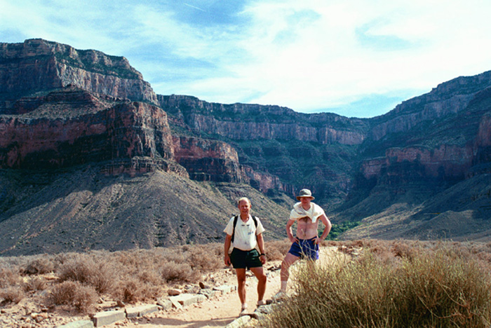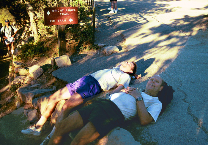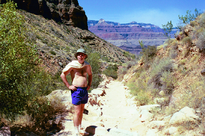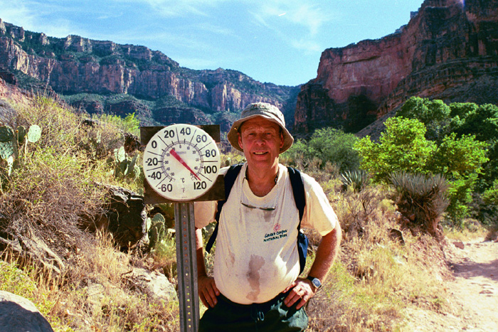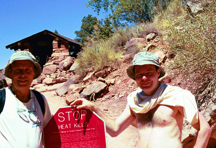 One-third down the canyon. The warning on the sign says "STOP - Heat kills